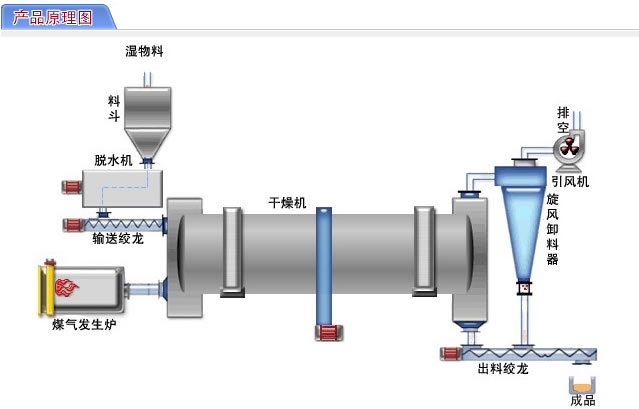 一、煤泥烘干機(jī)結(jié)構(gòu)及工作原理 煤泥烘干機(jī)主要由熱源、打散裝置、帶式上料機(jī)、進(jìn)料機(jī)、回轉(zhuǎn)滾筒、帶式出料機(jī)、引風(fēng)機(jī)、卸料器和配電柜構(gòu)成。該套設(shè)備工作原理如下:煤泥由于具有一定的粘性,在烘干過(guò)程中濕煤泥進(jìn)入烘干機(jī)后分以下幾個(gè)工作區(qū):一是導(dǎo)料區(qū),濕煤泥進(jìn)入此區(qū)與高溫?zé)犸L(fēng)接觸迅速蒸發(fā)水分,物料在大導(dǎo)角的抄板抄動(dòng)下,形不成粘結(jié)便被導(dǎo)入下一個(gè)工作區(qū); 二是清理區(qū),濕煤泥在此區(qū)被抄板抄抄起形成料幕狀態(tài),物料落下時(shí)易形成粘結(jié)滾筒壁現(xiàn)象,在此區(qū)由于設(shè)備設(shè)計(jì)有清掃裝置,清掃裝置便十分合理地清掃了內(nèi)壁粘附的物料,在這個(gè)過(guò)程中,清掃裝置對(duì)于物料 團(tuán)球結(jié)塊也起破碎作用,從而增加了熱交換面積,提高了干燥速率;三是傾斜揚(yáng)料板區(qū),濕煤泥在此區(qū)已 呈低水分松散狀態(tài),物料在此區(qū)已不具有粘結(jié)現(xiàn)象,經(jīng)過(guò)熱交換后物料達(dá)到所要求的水分狀態(tài),進(jìn)入后 的出料區(qū);四是出料區(qū),滾筒在此區(qū)不設(shè)抄板,物料在此區(qū)滾動(dòng)滑行至排料口,完成整個(gè)烘干過(guò)程。 二、主要特點(diǎn) 1、烘干機(jī)抗過(guò)載能力強(qiáng),處理量大,燃料消耗少,干燥成本低; 2、采用順流干燥方式,煙氣與濕物料由同一側(cè)進(jìn)入干燥機(jī),可以利用高溫?zé)煔猥@得很高的蒸發(fā)強(qiáng)度,烘干機(jī)溫度低,熱效率高; 3、可根據(jù)不同的物料性質(zhì)改變運(yùn)行參數(shù),使物料在烘干機(jī)筒體內(nèi)能夠形成穩(wěn)定的全斷面料幕,質(zhì)熱交換更為充分; 4、新型給料、排料裝置,滾筒干燥機(jī)給料堵塞、不連續(xù)、不均勻和返料等現(xiàn)象,降低了除塵系統(tǒng)的負(fù)荷; 5、新型內(nèi)部結(jié)構(gòu),強(qiáng)化了對(duì)已分散物料的清掃和熱傳導(dǎo)作用,消除了筒體內(nèi)壁的沾粘現(xiàn)象,對(duì)物料水分、粘性的適應(yīng)性更強(qiáng); 6、烘干機(jī)實(shí)現(xiàn)了 “ 零水平推力 ” ,大大減少了擋托輪的磨損,筒體運(yùn)轉(zhuǎn)平穩(wěn)可靠; 7、烘干機(jī)采用 “ 調(diào)心式托輪裝置 ” ,使托輪和滾圈的配合永遠(yuǎn)呈線性接觸,從而大大降低了磨損和動(dòng)力損耗; 8、可根據(jù)用戶要求控制產(chǎn)品粒度和水分,烘干煤泥時(shí)產(chǎn)品水分可達(dá) 8% 以下,粒度可控制在 8mm 以下。 三、工藝流程圖